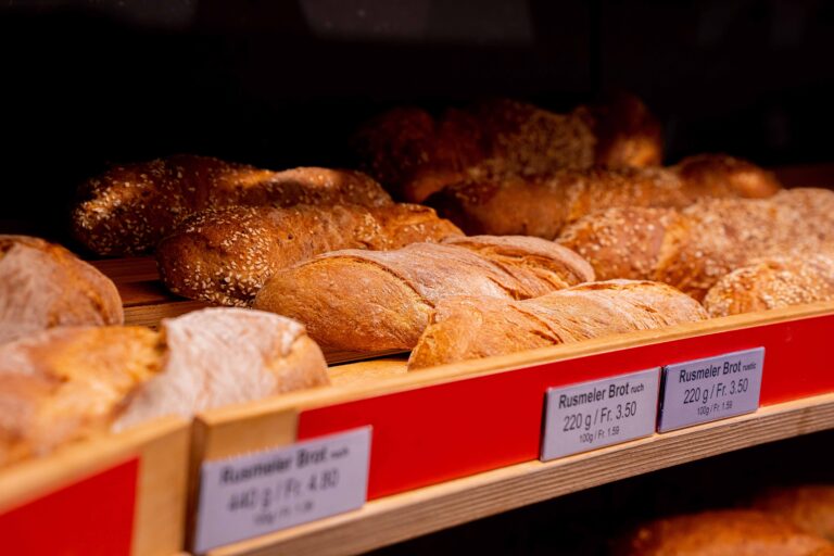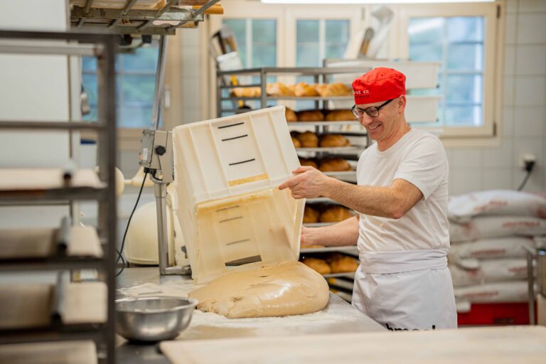 Bei der Herstellung unserer Produkte legen wir grössten Wert auf Frische und gesunde regionale Rohstoffe. Besonders wichtig sind uns die Ruhezeiten für unsere Teige. Denn nur so können sie später ihre knusprigen und aromatischen Eigenschaften optimal entfalten. Nebst feinen Brotsorten wie dem Buure-Zopf, dem Quarkbrot oder dem Tessiner finden Sie bei uns auch diverse Sauerteigbrote und Brote aus alten Mehlsorten wie UrDinkel.