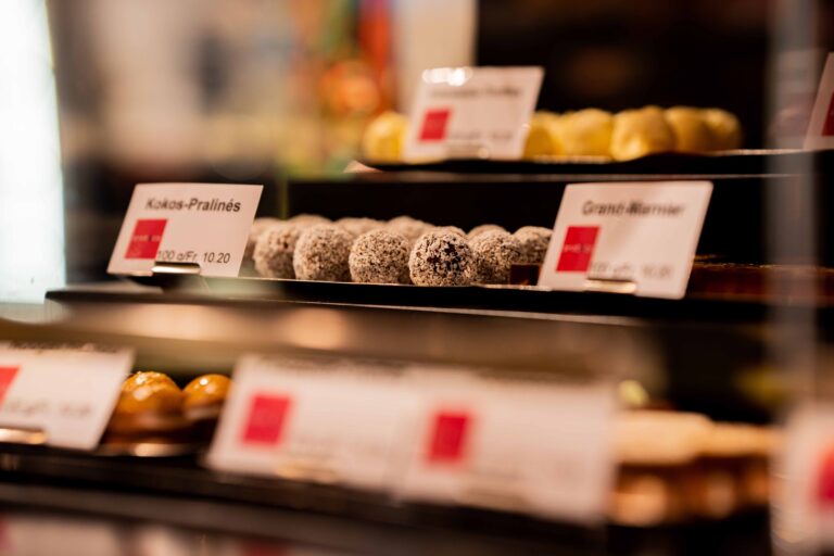 Alle Filialen verfügen zudem über ein Café. Hier lässt es sich die Zeit gemütlich bei Kaffee und Kuchen oder unseren Mittagsmenüs verbringen. Kommen Sie vorbei und gönnen Sie sich einen leckeren Snack oder etwas Süsses.